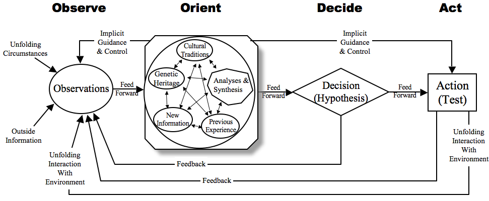 I had first been introduced to the OODA loop during a certification course. At the time, the instructor essentially gave the one dimensional answer and overview of what the OODA loop was. He wasn’t wrong, and he wasn’t not relevant. It was an introductory analysis course. The one dimensional answer was perfect for that environment.